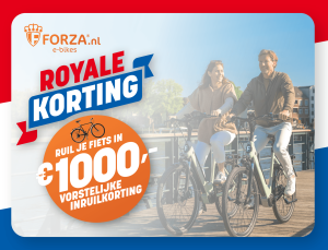 Koningsdag is hét moment om extra voordelig op pad te gaan. Daarom profiteer je bij Forza tijdelijk van onze Royale Korting: ruil je huidige fiets in en ontvang tot €1.000 vorstelijke inruilkorting op een nieuwe Forza e-bike.