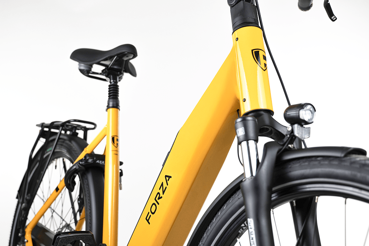 Onze nieuwste en meest moderne e-bike is hier: de Forza Prisma Honey Bee Yellow.